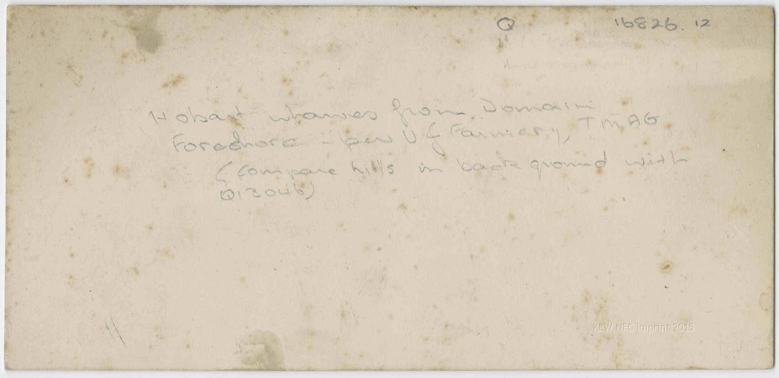 This is a long distance view across to the bar at Elwick Bay and to the property of John Wilkinson, Glenorchy before the Elwick Racecourse and grandstand were constructed. The view was taken from the Hull property at Tolosa, Glenorchy. One of John Wilkinson's daughters Mary Jane married Henry Hull in December 1861.